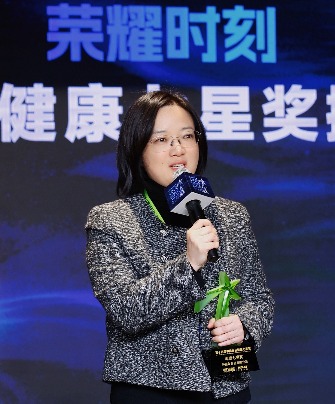 好丽友食品(上海)有限公司总经理陈丽华在获奖感言中表达了对主办方的感谢,她表示:“四获年度七星奖对好丽友来说是认可更是激励。未来,我们将始终坚守“好丽友,好朋友”品牌初心,以科技为支撑,持续推动数智化品质管理体系建设、零食健康化以及绿色可持续发展实践,为消费者奉献更多安全、健康、美味的创新产品。”